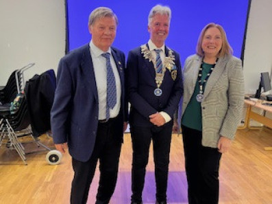 President i rotaryåret 2024-25 er Norunn Tveiten Benestad, Ole Moe er past president og Ann Kristin Skjølingstad er innkommende president.